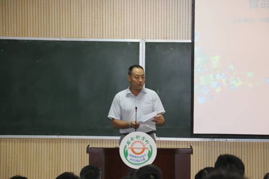 陜西省食藥監(jiān)局副巡視員王志宏向學生宣傳食品安全知識。
