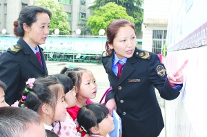 湖北省襄陽(yáng)市廣泛開展“食品安全進(jìn)校園”活動(dòng)。圖為襄陽(yáng)市食品藥品監(jiān)管局工作人員正在某小學(xué)宣講食品安全知識(shí)。 李楠 攝