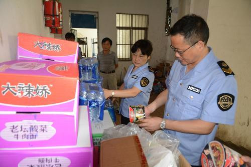 圖為7月4日池州市貴池區(qū)食品藥品監(jiān)管局執(zhí)法人員在檢查食品經營企業(yè)。(蔣慶華 攝)