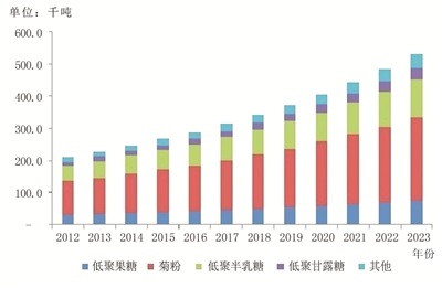 據(jù)Global Market Insights Inc.數(shù)據(jù)顯示,因受到人們消費意識和監(jiān)管法規(guī)的推動,2015年全球益生元銷售額為33.1億美元,預(yù)計到2023年會超過75億美元,年復(fù)合增長率達11.6%。從銷量來看,2016年~2023年,預(yù)計全球益生元銷量年復(fù)合增長率超過9%,銷量將達135.9萬噸。這表明具有益生元功能的菊粉必將大有可為(見圖3)。