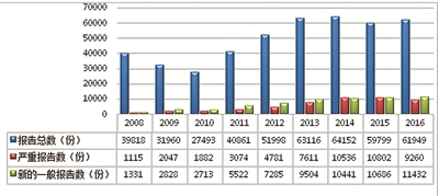 2008年~2016年藥品不良反應(yīng)報(bào)告情況