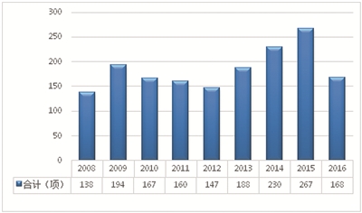 2008年~2016年藥品類(lèi)注冊(cè)審評(píng)情況