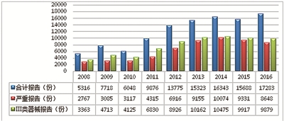 2008年~2016年醫(yī)療器械不良事件報(bào)告情況