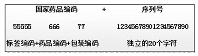 2011年2月15日,美國FDA召開了關(guān)于處方藥跟蹤與追溯系統(tǒng)的公眾研討會,對SNI的應(yīng)用進(jìn)行了初次介紹。SNI是一套序列化的國家藥品編碼(sNDC)。sNDC由美國《聯(lián)邦規(guī)章典集》第21篇207部分闡述的“國家藥品編碼”(NDC)組成,是一組獨(dú)有的序列號,由標(biāo)簽編碼、藥品編碼、包裝編碼共10個(gè)字符組成。NDC由每個(gè)獨(dú)立包裝的生產(chǎn)商或分裝商生成,可保證一物一碼,并以條形碼的形式印刷在藥品包裝上,而序列號應(yīng)為數(shù)字或字母(包括數(shù)字和/或字母),不超過20個(gè)字符(字母和/或數(shù)字)。sNDC示例如圖1所示。