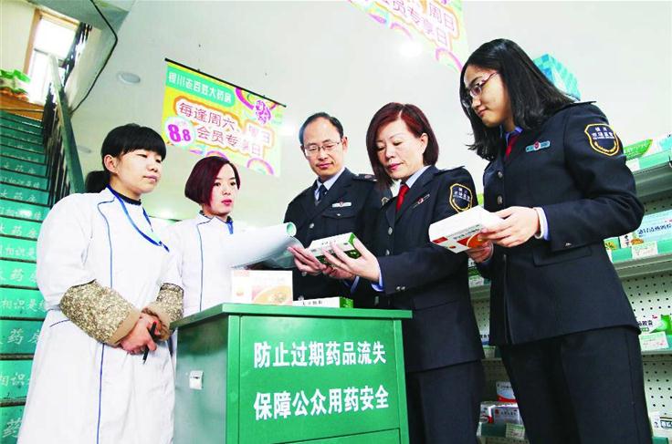 圖①:銀川市食品藥品監(jiān)管部門執(zhí)法人員對家庭過期藥品定點回收單位進行巡查