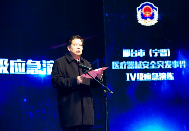 市政府副市長(zhǎng)、食安委副主任鄧素雪在致辭中指出:食品藥品安全是最大的民生工程,近年來(lái),在省政府食安辦、省食藥監(jiān)局的大力指導(dǎo)、支持下,邢臺(tái)市委、市政府高度重視食品藥品安全工作,牢固樹(shù)立以人民為中心的發(fā)展思想,堅(jiān)持源頭嚴(yán)防、過(guò)程嚴(yán)管、風(fēng)險(xiǎn)嚴(yán)控、違法嚴(yán)懲,守住了不發(fā)生重大食品藥品安全事件和區(qū)域性、系統(tǒng)性風(fēng)險(xiǎn)隱患的底線,確保了全市780萬(wàn)人民群眾飲食用藥安全。應(yīng)急工作是保障食品藥品安全的重要內(nèi)容,是食品藥品安全監(jiān)管工作的“防火墻”和最后屏障。邢臺(tái)市將食品藥品突發(fā)事件應(yīng)急處置工作擺上重要位置,科學(xué)編制應(yīng)急預(yù)案,加強(qiáng)應(yīng)急工作保障,連續(xù)四年組織開(kāi)展大規(guī)模食品藥品應(yīng)急演練,提升了應(yīng)急處置能力,守牢了食品藥品安全最后一道防線。醫(yī)療器械作為食品藥品(包括食品、藥品、保健食品、化妝品、醫(yī)療器械,簡(jiǎn)稱“四品一械”)安全的重要組成部分,關(guān)系群眾身體健康和生命安全。邢臺(tái)市在全省首次組織開(kāi)展這次醫(yī)療器械突發(fā)事件應(yīng)急演練,是對(duì)我市醫(yī)療器械突發(fā)事件應(yīng)急處置工作的一次大檢閱,旨在規(guī)范醫(yī)療器械安全突發(fā)事件應(yīng)急處置流程,鍛煉隊(duì)伍的突發(fā)事件應(yīng)對(duì)能力。