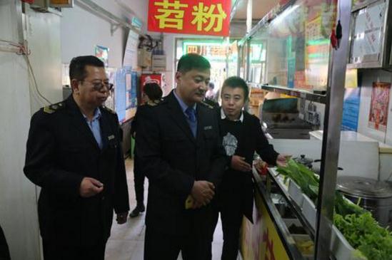 圖為長春市食品藥品監(jiān)管局二道分局監(jiān)管人員在長春師范大學(xué)校內(nèi)興華美食城例行檢查