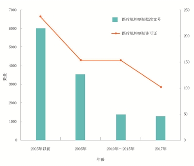 圖1 湖南省醫(yī)療機(jī)構(gòu)制劑批準(zhǔn)文號、制劑許可證概況