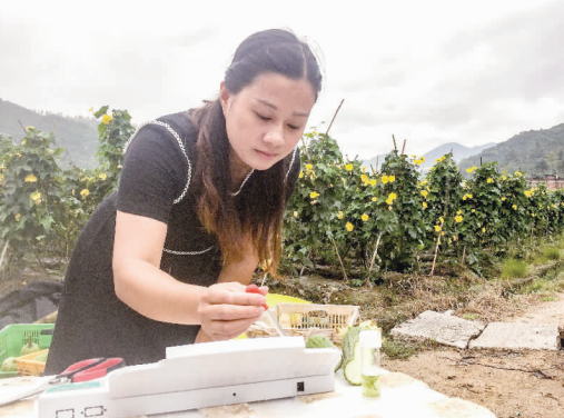圖為蔬菜生產(chǎn)質(zhì)量安全監(jiān)管員在田間對菜農(nóng)種植的蔬菜進(jìn)行快檢。