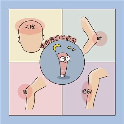 常用焦油類藥有1%~5%煤焦油、5%~10%黑豆餾油、5%糠餾油幾種。單藥治療的最佳部位是膝、肘、頭皮和局限于脛部的銀屑病,多夜間使用,以避免日間使用后產(chǎn)生的氣味。