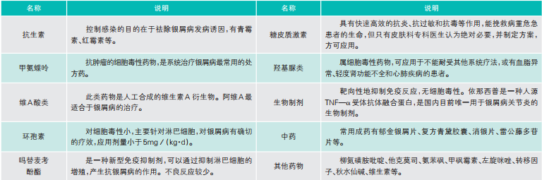 對銀屑病的治療,除了外用藥和光療,全身用藥也是必不可少的治療環(huán)節(jié)。常用的內(nèi)用藥有: