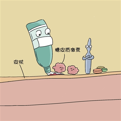 外用糖皮質(zhì)激素能抑制銀屑病皮疹的炎癥和細胞增生,使斑塊變薄、紅色消退、鱗屑減少、瘙癢癥狀減輕。