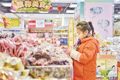 圖為小顧客正在散裝食品區(qū)挑選食品/攝影 董傳陽