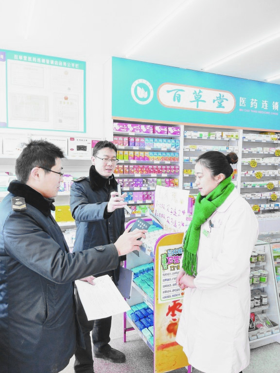 圖為執(zhí)法人員在一家藥店檢查 孟超/攝