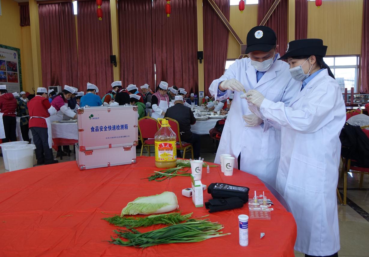 一連幾天,黃用忠和監(jiān)管人員一起,在清冽的寒風(fēng)中,來到各村,逐一檢查食材的進(jìn)貨臺賬、檢驗(yàn)檢疫票據(jù),快檢農(nóng)殘、黃曲霉素等。砧板、道具、餐盤等餐飲具的清潔情況,生熟標(biāo)記是否做好,及時消毒清潔情況,都是規(guī)范餃子制作流程的關(guān)鍵因素。