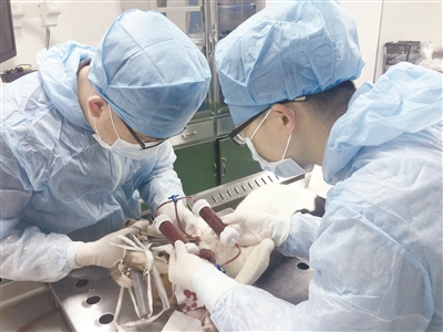圖為深圳市醫(yī)療器械檢測(cè)中心技術(shù)人員進(jìn)行器械產(chǎn)品的動(dòng)物安全性評(píng)價(jià)實(shí)驗(yàn) / 深圳市醫(yī)療器械檢測(cè)中心供圖
