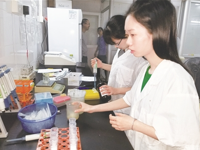 圖為環(huán)球水產(chǎn)品經(jīng)營市場檢測中心工作人員在做貝類產(chǎn)品檢測,為產(chǎn)品質(zhì)量安全把關(guān)。