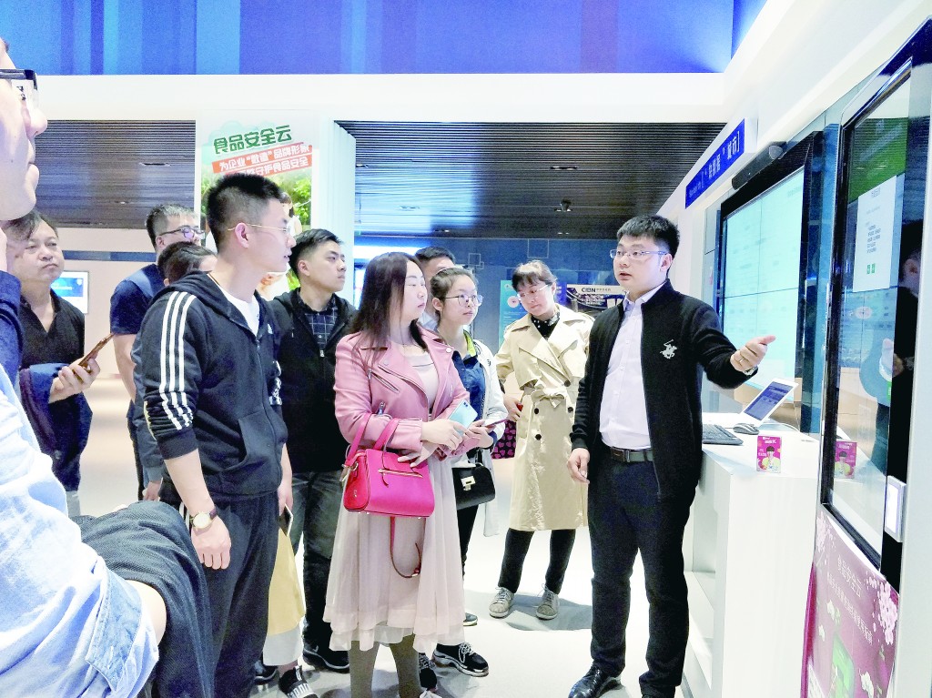 為5月10日,在高級研修學院舉辦的培訓會議現(xiàn)場教學環(huán)節(jié)上,學員們參觀貴州大數(shù)據(jù)綜合試驗區(qū)展示中心食品安全云專區(qū)。