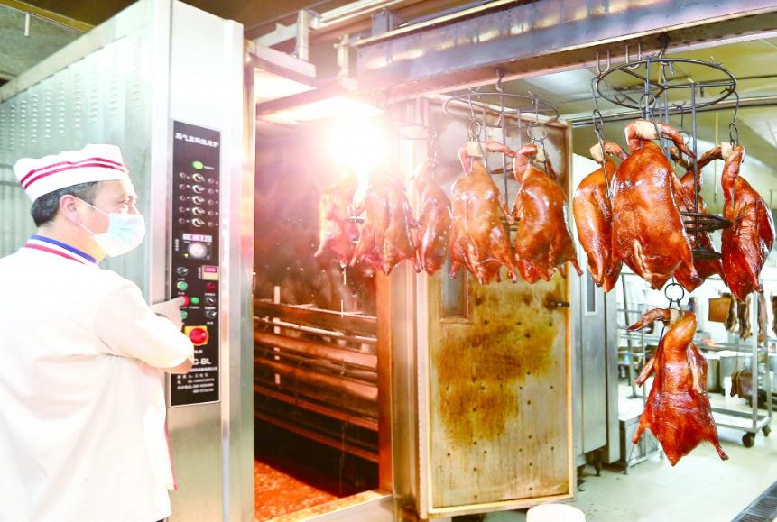 圖為佛山市集中加工中心的小作坊使用滑軌將待加工品自動導(dǎo)入烤箱,避免手動污染。佛山市局供圖