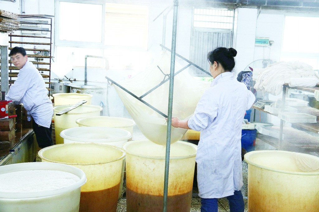 回溯到2011年之前,那時的豆腐作坊與眼前景象有天壤之別。數(shù)十家豆腐小作坊散落在夷陵區(qū)各個村鎮(zhèn),業(yè)主們各自經(jīng)營。做豆腐的豆渣是很好的豬飼料,一般作坊都會養(yǎng)幾頭豬。豬糞臭氣和豆腐香氣混在一起,尤其到了夏天,蚊蠅滿天飛。按照食品安全標準,這些豆腐作坊都不達標。然而全部關(guān)停,如何滿足當?shù)厝讼彩扯怪破返娘嬍沉?xí)慣,這些經(jīng)營者的生計又該怎么辦?