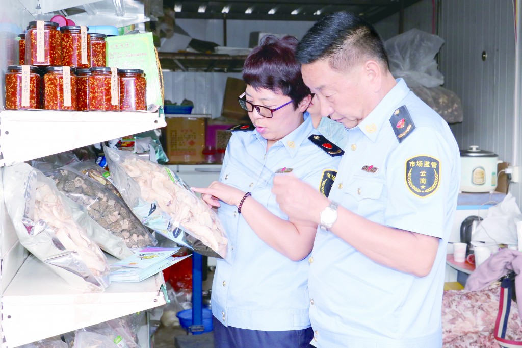 近日,云南省南華縣市場監(jiān)管局組織執(zhí)法人員排查南華野生菌交易市場經(jīng)營的野生菌食品安全。同時,他們還向群眾發(fā)放了3萬張宣傳掛圖、3萬份宣傳折頁,以提高其野生菌中毒防范意識。本報記者 李江映 通訊員 趙亮 攝影報道