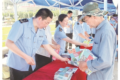 相關(guān)部門在活動(dòng)現(xiàn)場(chǎng)設(shè)置食品安全宣傳臺(tái),放置宣傳展板,并向群眾發(fā)放宣傳材料。