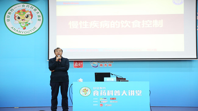 2017年11月24日,第十期“安安有約—食藥科普大講堂活動(dòng)”在廣州舉行。此次活動(dòng)邀請(qǐng)了中國(guó)農(nóng)業(yè)大學(xué)食品學(xué)院營(yíng)養(yǎng)系與食品安全系主任何計(jì)國(guó)作主題為“食品營(yíng)養(yǎng)健康與慢性疾病”的專題講座,現(xiàn)場(chǎng)約四百名聽(tīng)眾參加,活動(dòng)現(xiàn)場(chǎng)同時(shí)與21個(gè)地級(jí)市食藥監(jiān)管部門視頻連接進(jìn)行直播互動(dòng)。