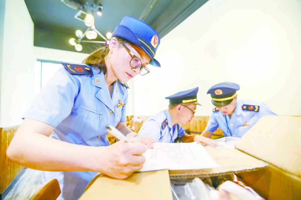 (本版照片為紹興市市場監(jiān)管系統(tǒng)開展食品、保健食品欺詐和虛假宣傳專項(xiàng)整治活動,均由紹興市市場監(jiān)管局提供)