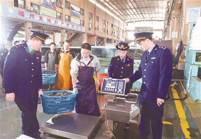 圖為福州市馬尾名成水產(chǎn)品市場(chǎng)打造可視化追溯系統(tǒng),推廣智能批發(fā)追溯電子秤/攝影 鄭路平