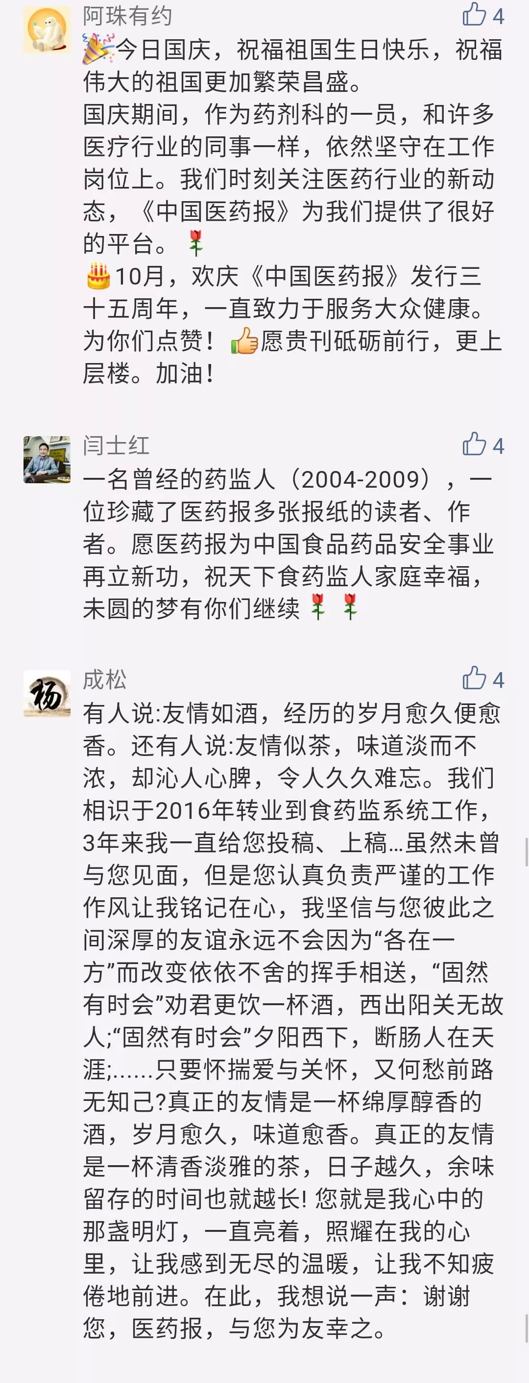 紙短情長,每一條評論都讓小編為之動容?!吨袊t(yī)藥報》在眾多祝福中定當不負眾望,不忘初心,砥礪前行!