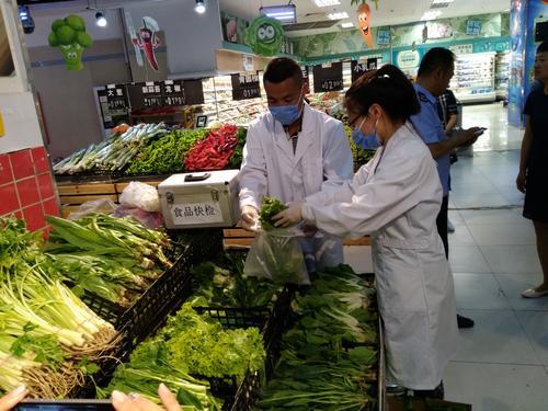 監(jiān)管人員檢查超市生鮮類(lèi)食品安全。