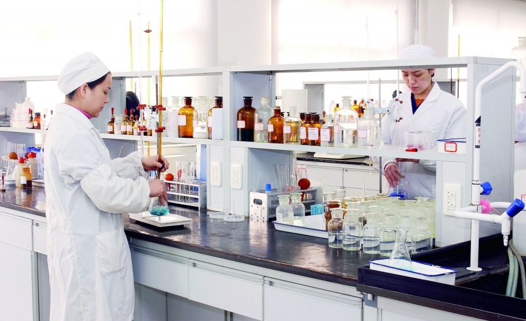 2005年3月8日,華藥檢驗人員在對產(chǎn)品質(zhì)量進(jìn)行檢驗。