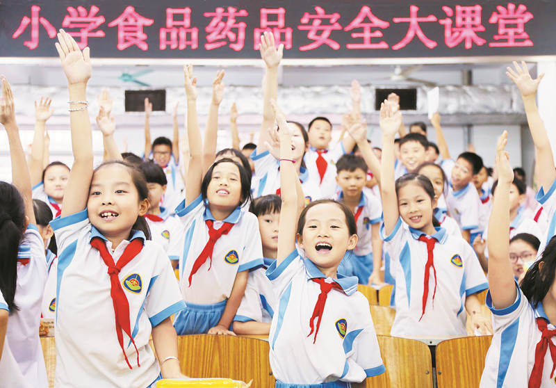 圖為小學(xué)生們在食品藥品安全大課堂上積極參與互動。東莞市食藥監(jiān)局供圖