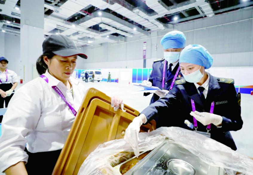 上圖為該局執(zhí)法人員在進(jìn)博會(huì)現(xiàn)場(chǎng)檢測(cè)食品。陳炅瑋 攝