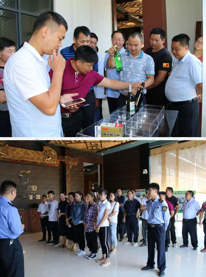 9月30日上午,凌云縣食藥監(jiān)監(jiān)局組織凌云縣食品生產(chǎn)企業(yè)負責人和質(zhì)量負責人參觀食品藥品安全科普宣傳基地及浪伏茶葉標準化生產(chǎn)線。圖為參觀人員現(xiàn)場辨別真假酒并聽取食品藥品科普知識。