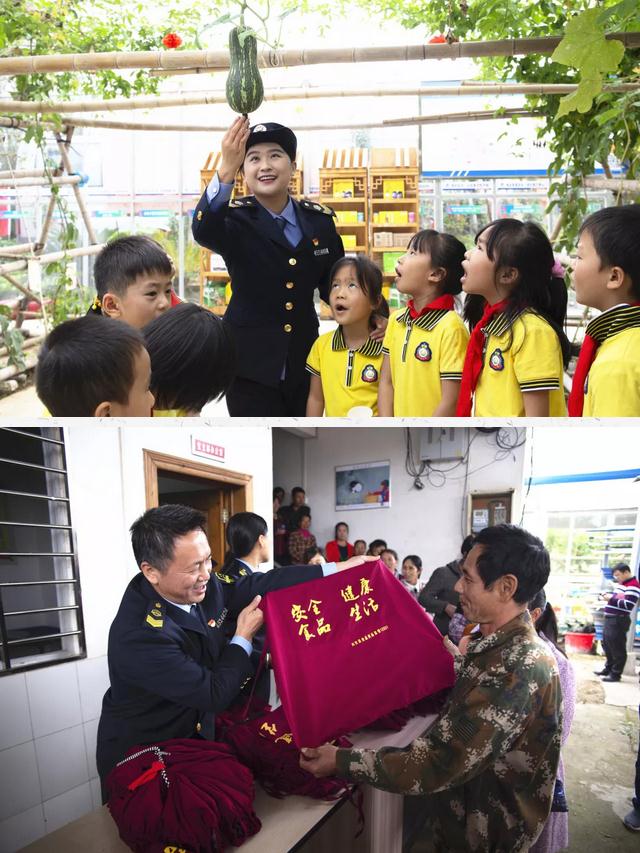 桂林市興安縣食藥監(jiān)工作人員在“大管家”科普站進行中小學生食品安全科普宣傳并向參加完流動課堂的“一條龍”餐飲從業(yè)者發(fā)放工作服。