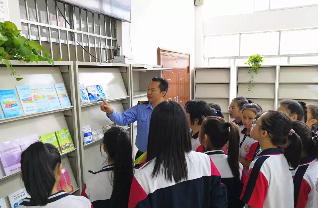 田陽縣食藥監(jiān)執(zhí)法人員充分利用科普宣傳站開放日為學生講解食品藥品安全科普知識。