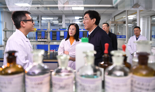 圖為巴音朝魯(左三)一行在吉林省藥品檢驗所調(diào)研。本報記者 葉陽歡 通訊員 曹夢南 攝影報道
