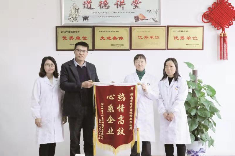 湖南明康中錦醫(yī)療科技發(fā)展有限公司向湖南省器檢所贈(zèng)送錦旗