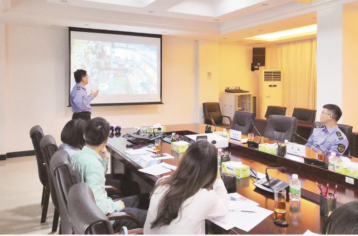 12月6日,佛山市食藥監(jiān)局工作人員向媒體介紹"陽光餐飲"項目建設情況。陳麗雅攝