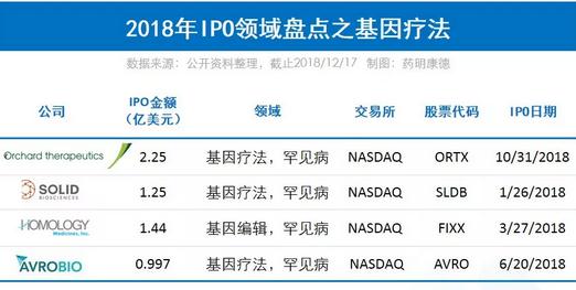 去年12月,首款靶向特定基因突變的“直接給藥型”基因療法——Spark 公司的Luxturna獲得FDA批準上市。今年11月,Luxturna也在歐盟獲得批準。在今年的美國BIO大會上,F(xiàn)DA局長Scott Gottlieb博士曾表示,到2022年FDA有望批準達40款基因療法,鐮狀紅細胞病這樣的遺傳疾病在10年內(nèi)能看到治愈的希望。藥明康德的獨家深度報告也認為,基因編輯正在改寫人類的未來。2018年,4家基因療法公司完成了IPO,有望加速免疫缺陷、杜氏肌營養(yǎng)不良癥、苯丙酮尿癥以及溶酶體貯存癥基因療法的開發(fā)上市。