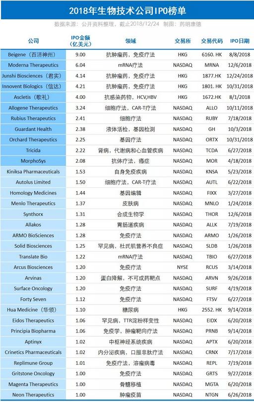 我們很高興看到2018年這么多生物技術新銳成功登錄資本市場,也期待在即將到來的2019年,更多創(chuàng)新藥研發(fā)企業(yè)能夠得到資本助力,加速新藥產(chǎn)品問世,為全球的患者帶來福音!