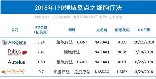 10月11日,Allogene公司IPO融資3.24億美元。這家專注于開發(fā)同種異體的即用型(off-the-shelf)CAR-T療法的生物技術公司在成立不到一年的時間里就完成了IPO。Allogene公司成立于今年4月,該公司的創(chuàng)始人是前Kite Pharma公司的高管Arie Belldegrun和David Chang博士。據(jù)彭博社(Bloomberg)的數(shù)據(jù)統(tǒng)計,這家公司是自2009年以來上市的最大生物技術公司(根據(jù)市值)。