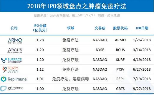 1月26日,ARMO Biosciences公司IPO融資1.28億美元。ARMO Biosciences在上市后僅幾個月,就被禮來(Eli Lilly)以16億美元的價格收購。ARMO的主要產(chǎn)品pegilodecakin是一種人源化重組細胞因子IL-10聚乙二醇化物,目前正處于3期試驗階段,用于治療胰腺癌。此外,ARMO的免疫腫瘤學產(chǎn)品管線還包括抗PD-1單克隆抗體。