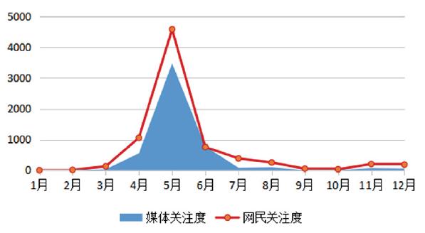 從整體關注度看,如圖1所示,輿情呈現“山峰式”發(fā)展特征,媒體關注度與網民關注度走勢一致。