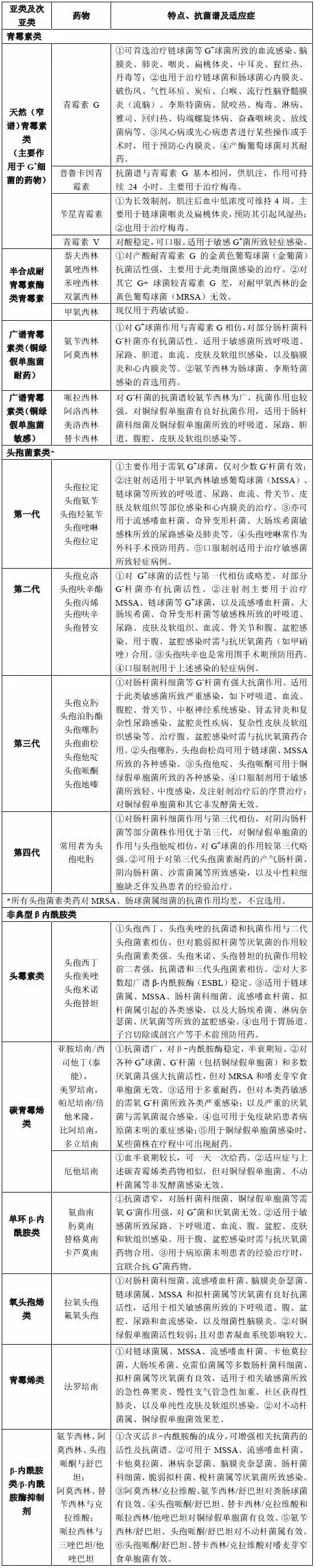 表1 β-內(nèi)酰胺類藥物的分類及特點(diǎn)