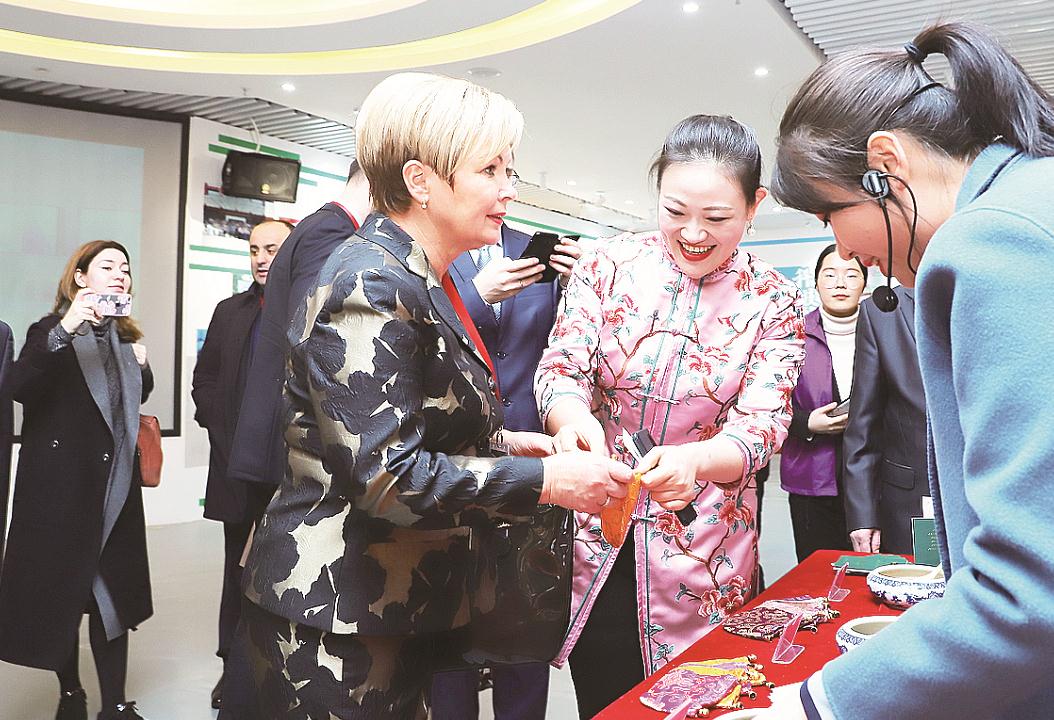 圖③為白云山中一、奇星藥業(yè)常務(wù)副總經(jīng)理寧娜(中)與俄羅斯烏拉爾國立醫(yī)科大學(xué)校長(左)交流。 藍志華 攝