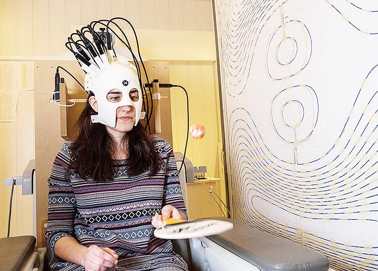 可穿戴腦掃描儀 通過腦磁圖(MEG)可以看到大腦內(nèi)的電活動,但是能夠做到這一點的設(shè)備——SQUID(超導(dǎo)量子干涉設(shè)備)非常巨大而沉重。能用MEG來研究正在移動的人嗎?來自英國諾丁漢大學(xué)和倫敦大學(xué)的科學(xué)家們設(shè)計了一種輕便、舒適的頭戴式光泵磁力儀OPM-MEG,可以完美地解決這個問題。這種磁力儀"頭盔"由3D打印而成,重量僅905克,而且能"私人訂制",以保證傳感器與每個測試者的頭皮表面直接接觸。測試者戴上這種"頭盔"后,仍然可以自由地進(jìn)行頭部活動。