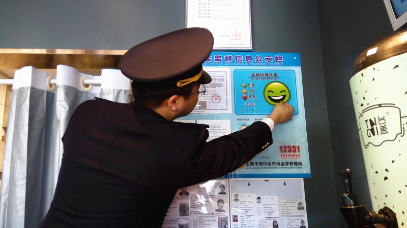 2018年4月8日,閔行區(qū)市場(chǎng)監(jiān)管局工作人員在奶茶鋪獲得食品經(jīng)營(yíng)許可證后,首次上門查驗(yàn),經(jīng)檢查合格,給奶茶鋪貼上“綠色笑臉”。如今,為更方便企業(yè),符合條件的獲證食品經(jīng)營(yíng)者,監(jiān)管部門上門查驗(yàn)時(shí),連負(fù)責(zé)人和現(xiàn)場(chǎng)平面圖都不用到現(xiàn)場(chǎng)了。