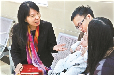 張巧利(左一)到預(yù)防接種門診與市民交談,調(diào)研免疫規(guī)劃工作。